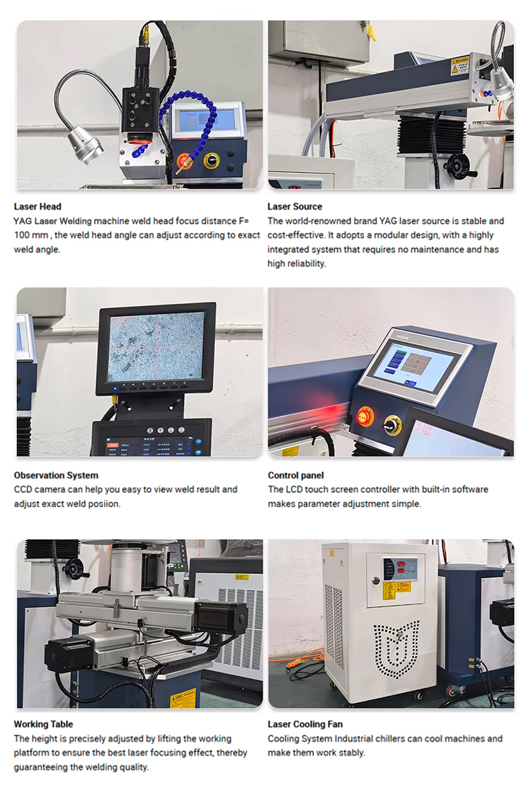 YAG laser welding machines are widely used for crack, fracture, wear, and sealing repair on various molds and hard metal parts, including: